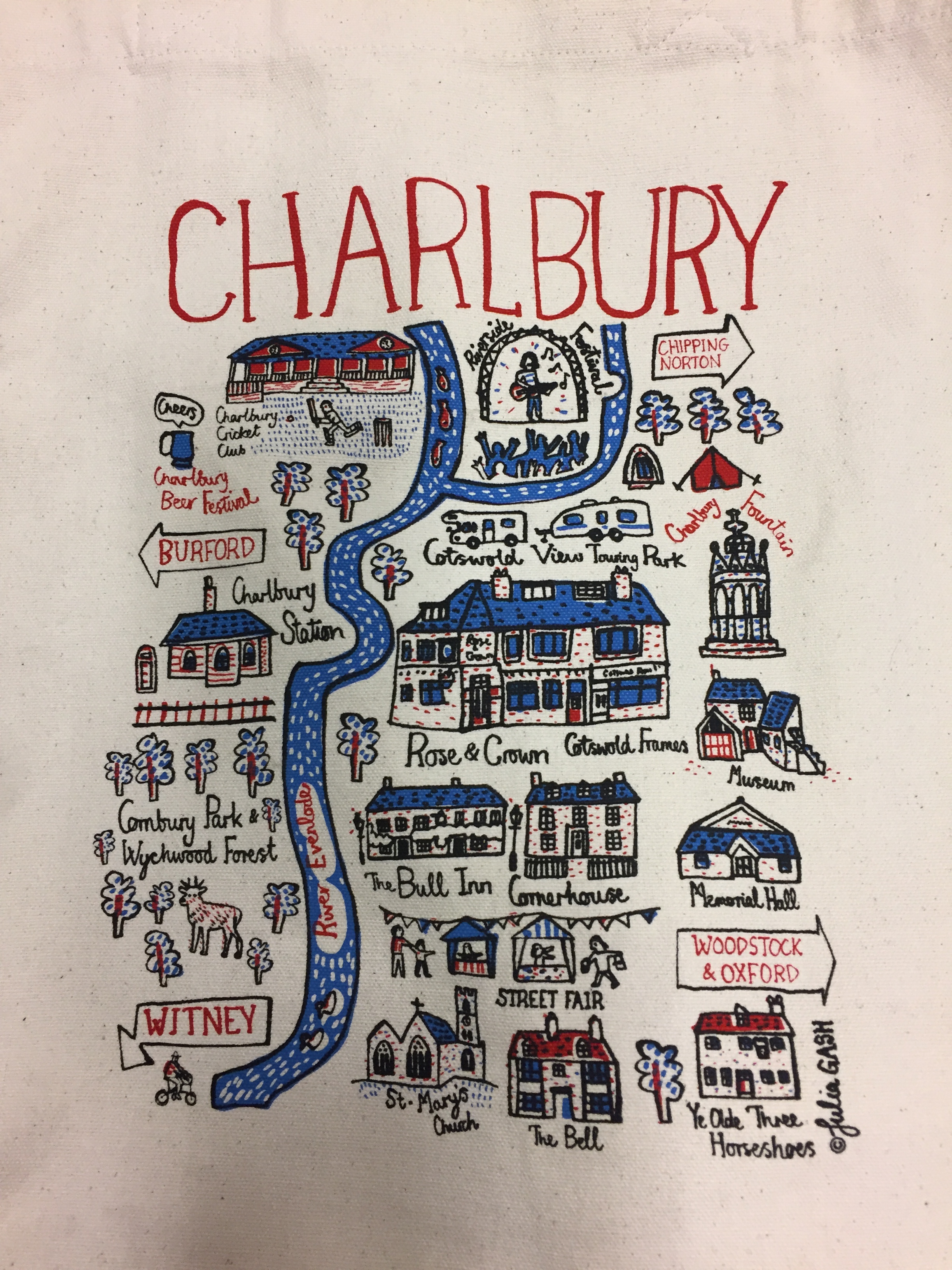 This map is on the tote bag my hosts, Nicke, Alice, and Evvie Millea, gave me. I love it- because it really has everything in Charlbury!